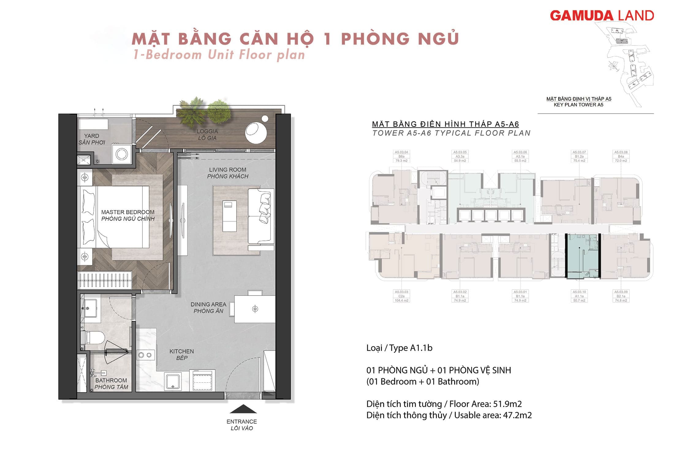 Măt bằng điển hình Tầng 1, Tòa Tháp A5 tại dự án The Ambience Gamuda Land.