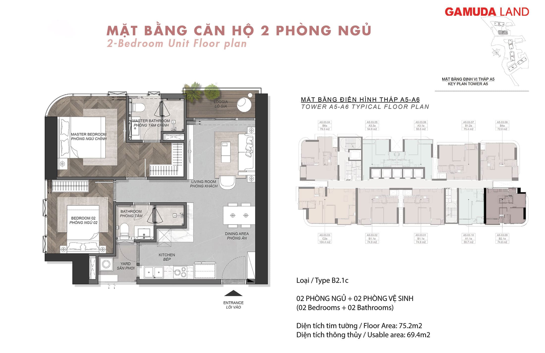 Măt bằng điển hình Tầng 2, Tòa Tháp A5 tại dự án The Ambience Gamuda Land.