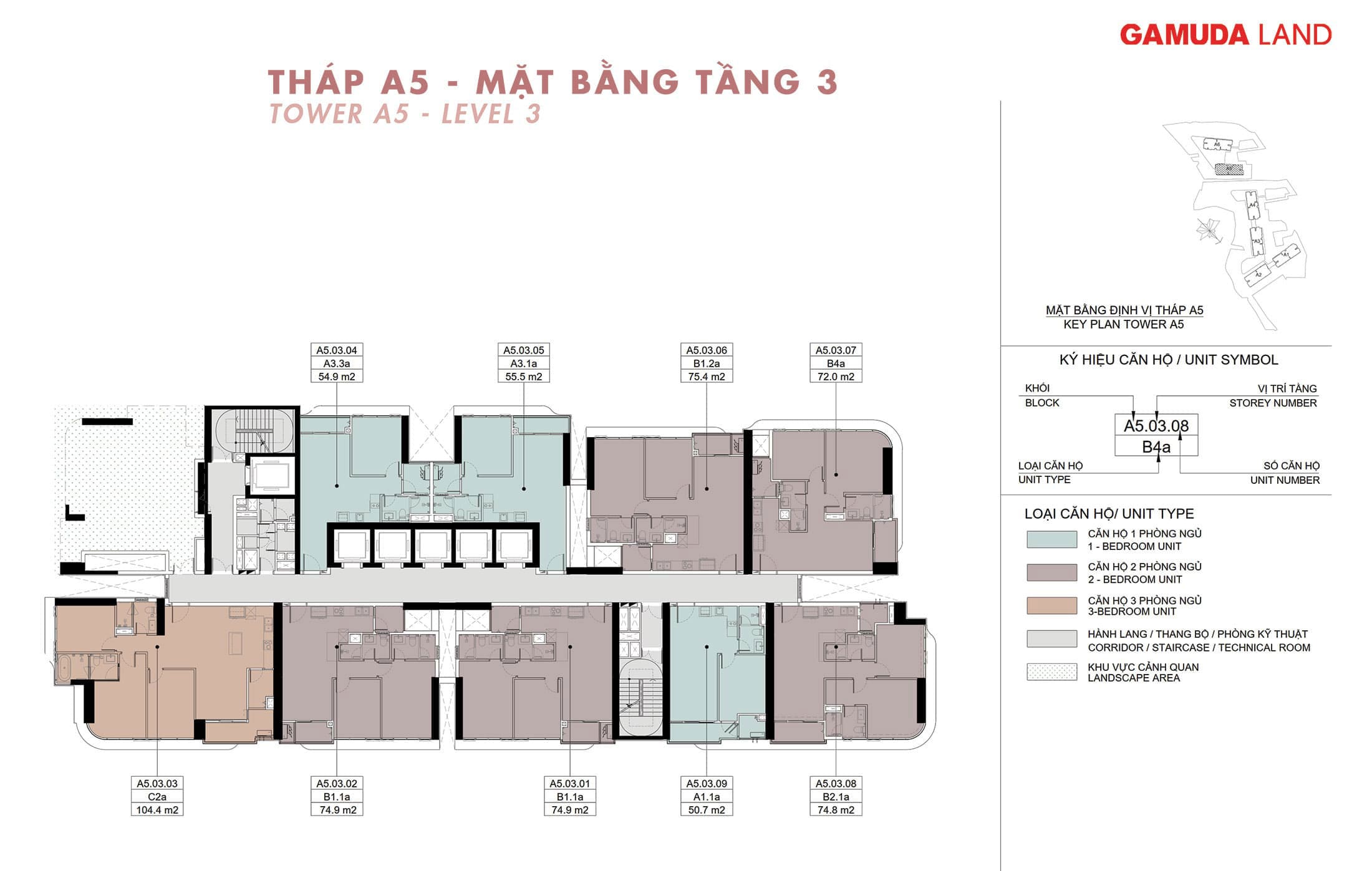 Măt bằng điển hình Tầng 3 Tòa Tháp A5 tại dự án The Ambience Gamuda Land.